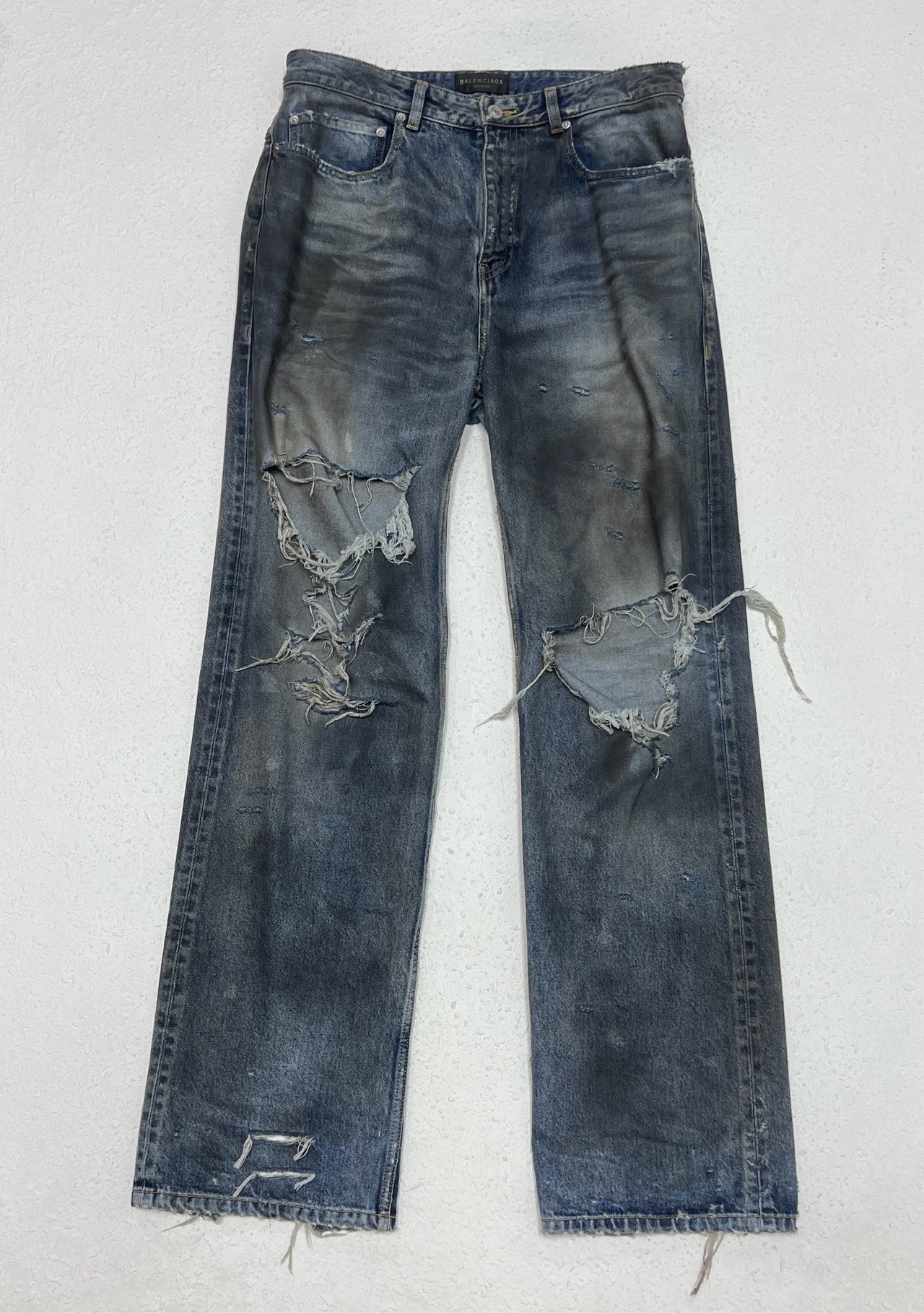 Balenciaga 泥染大破洞 做旧破坏 牛仔裤