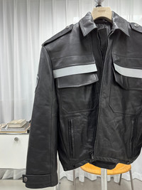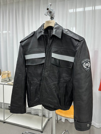 Global shipping with FedEx and typically delivered within 7 days Authentic only, all items are open to legit check All sales are final, no returns Made of buffalo leather, it's incredibly textured, and features reflective strips on the police uniform badge. Complemented by extra-wide shoulder pads, it creates a stylish police officer look.