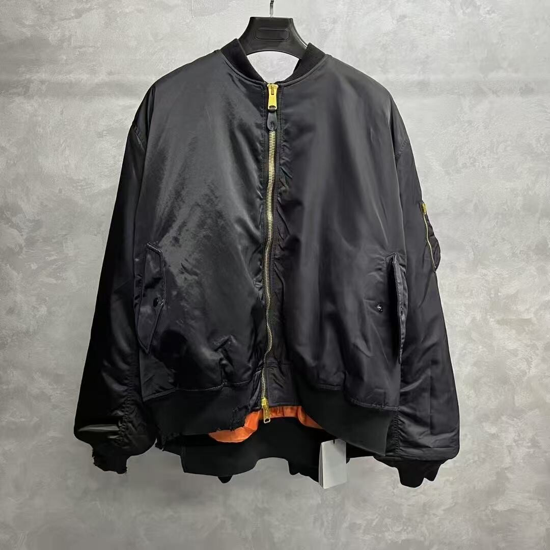 Balenciaga 2024 Black Paneled Hooded Bomber Jacket (Relaxed Fit)