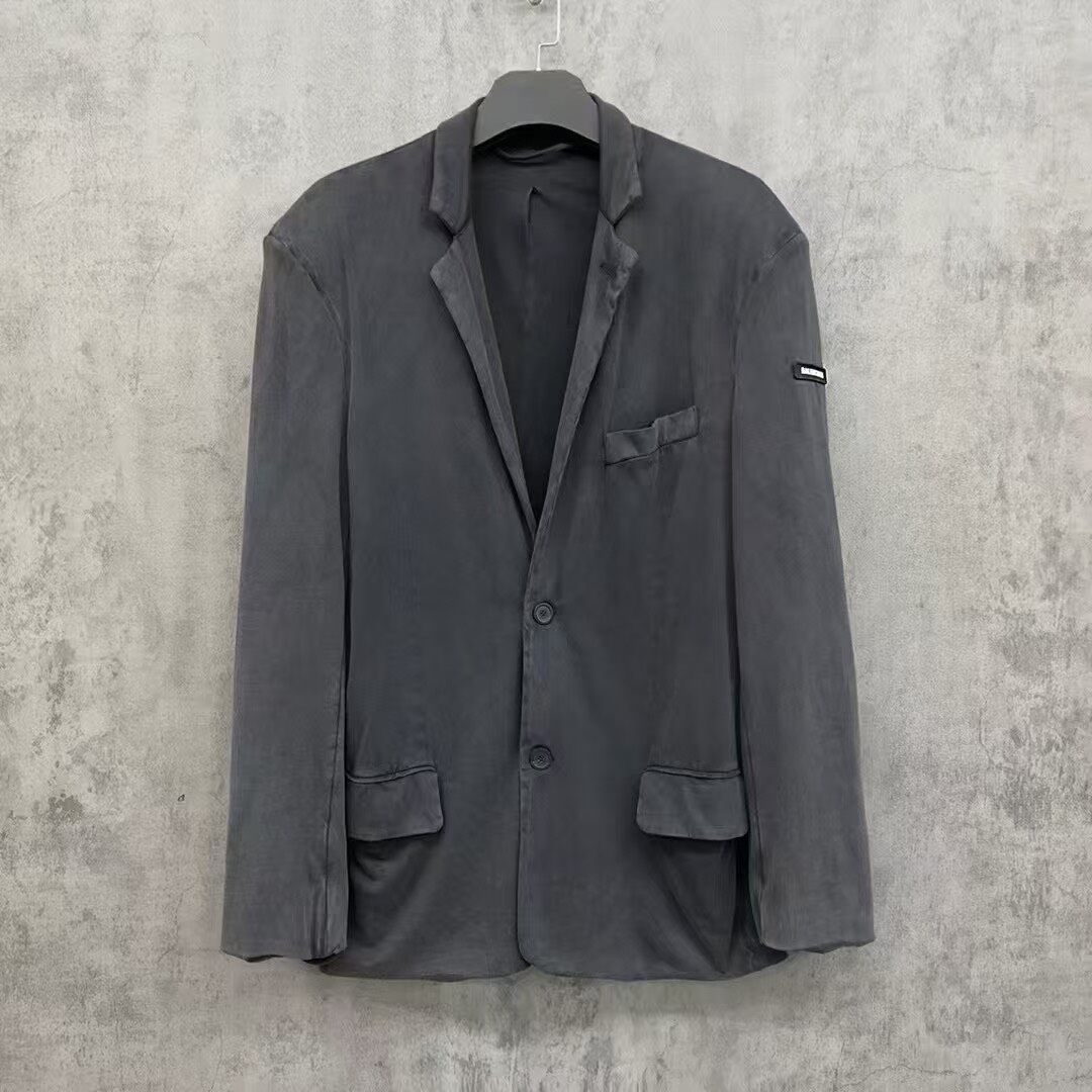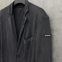 Balenciaga 2024 Washed & Distressed Suit Jacket with Sleeve Logo Patch