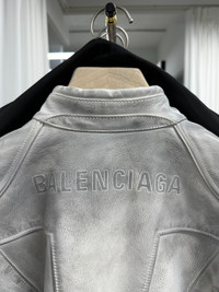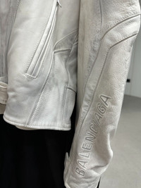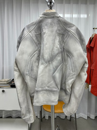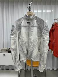 Balenciaga 23SS show style white distressed Biker leather jacket