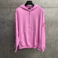 balenciaga 24 pink printed logo zip-up hoodie