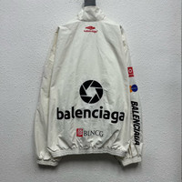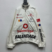 BALENCIAGA 24 WHITE RACING LGO EMBROIDERED LOGO ZIP-UP JACKET