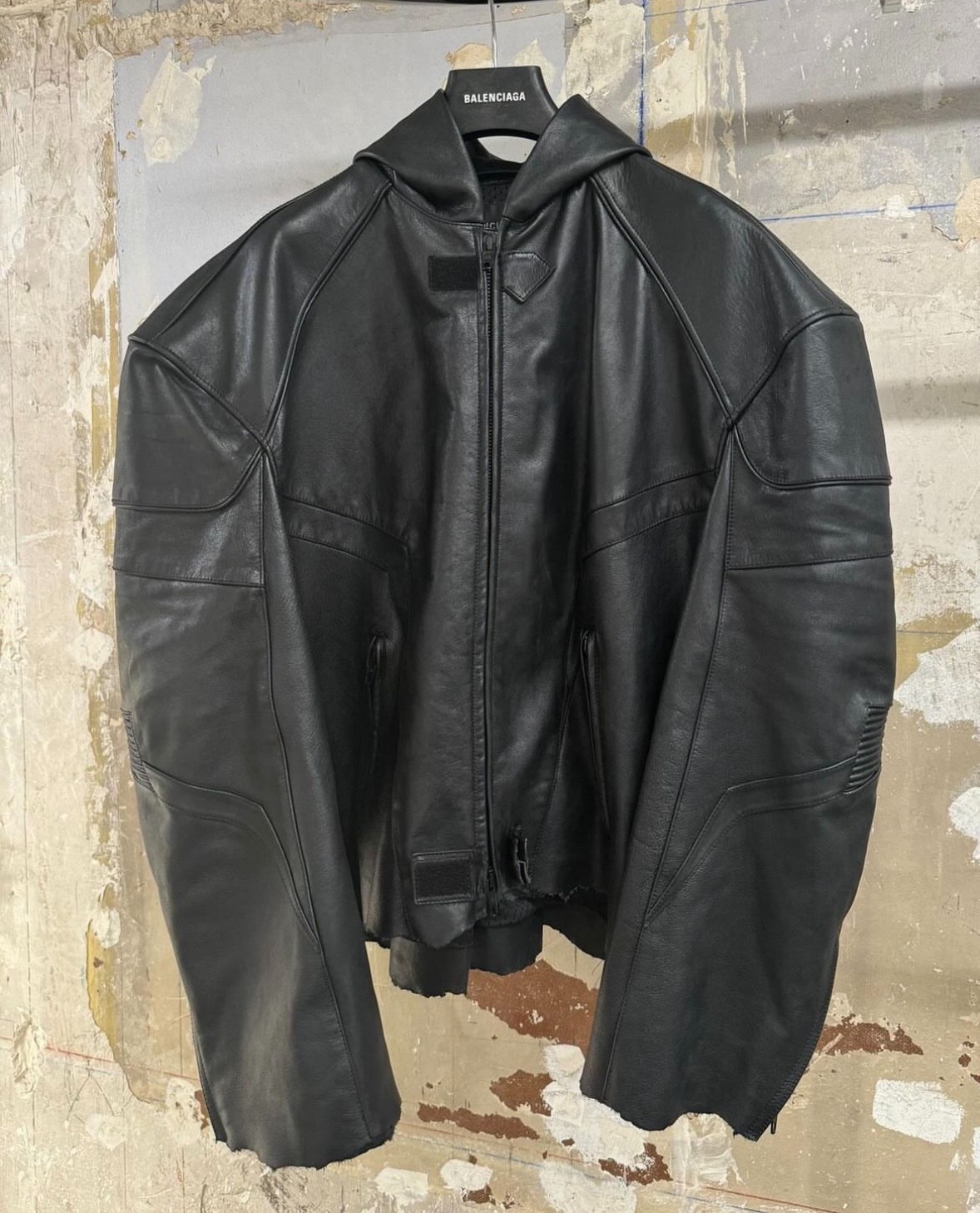 Balenciaga 24SS Show Hooded Biker Jacket Hooded Biker Leather Jacket