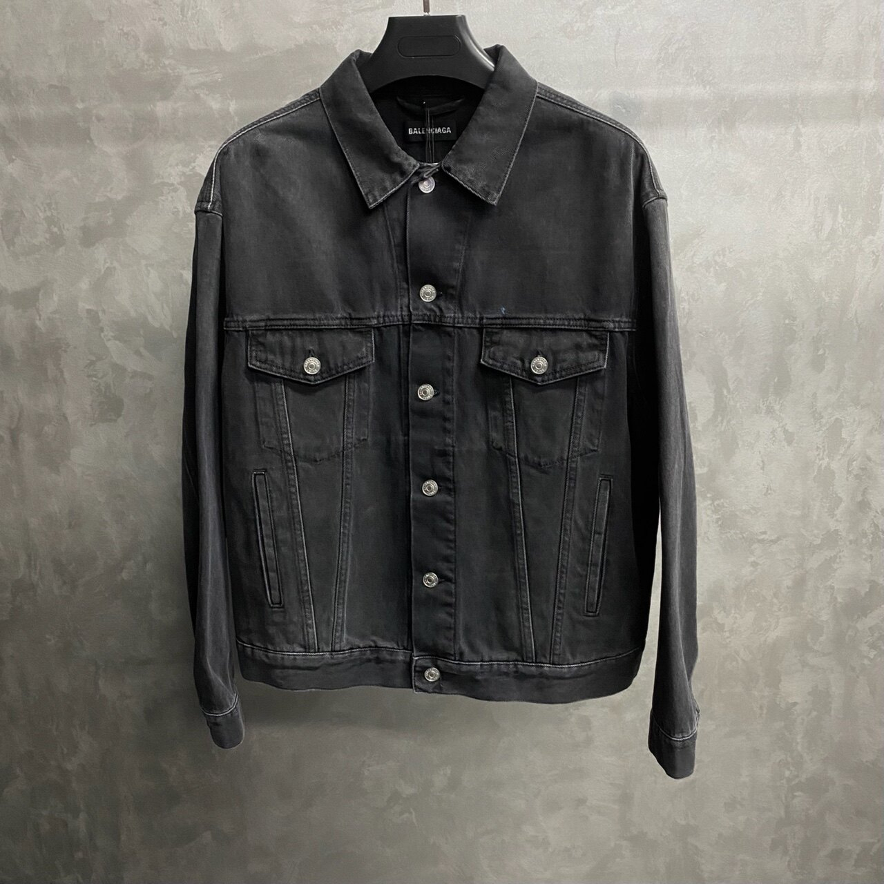 Balenciaga Black and Green Embroidered Logo Denim Jacket