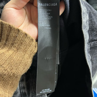 balenciaga Black and grey single-breasted denim jacket with diamond pattern and logo