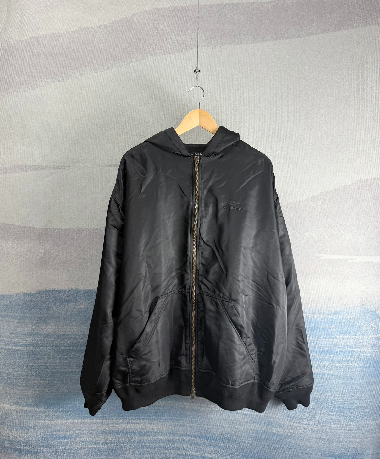 Balenciaga Black Satin 3B Embroidered Cotton Jacket