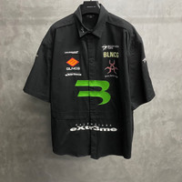 Balenciaga Black Short-Sleeve Shirt with Artistic Print, Embroidery, and Logo