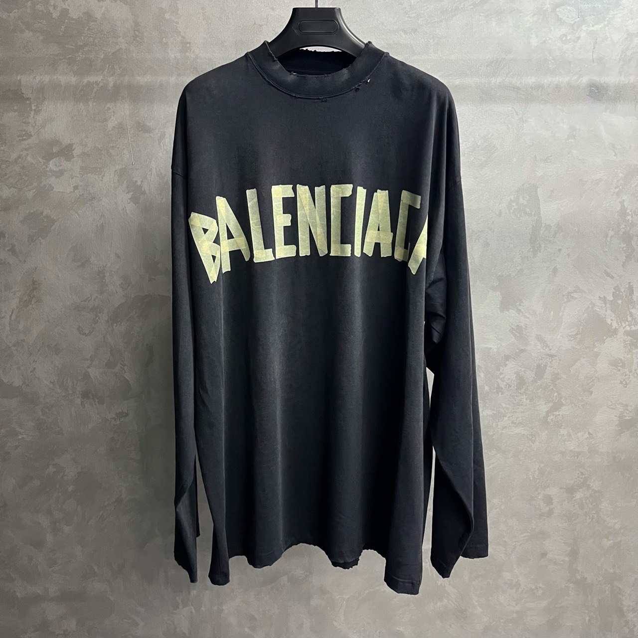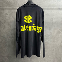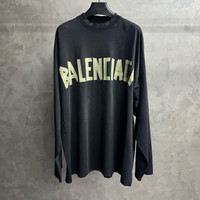 Balenciaga black tape letter logo print round neck long sleeve T-shirt