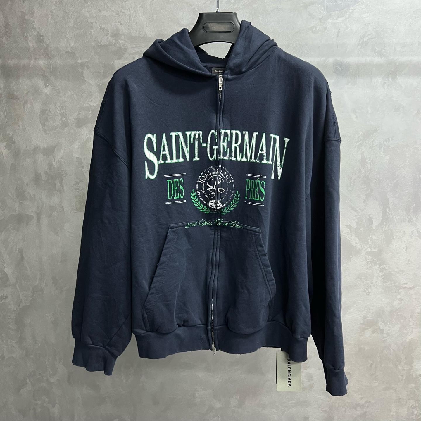 balenciaga Blue Lettering Printed Zippered Hooded Long-Sleeved Sweatshirt