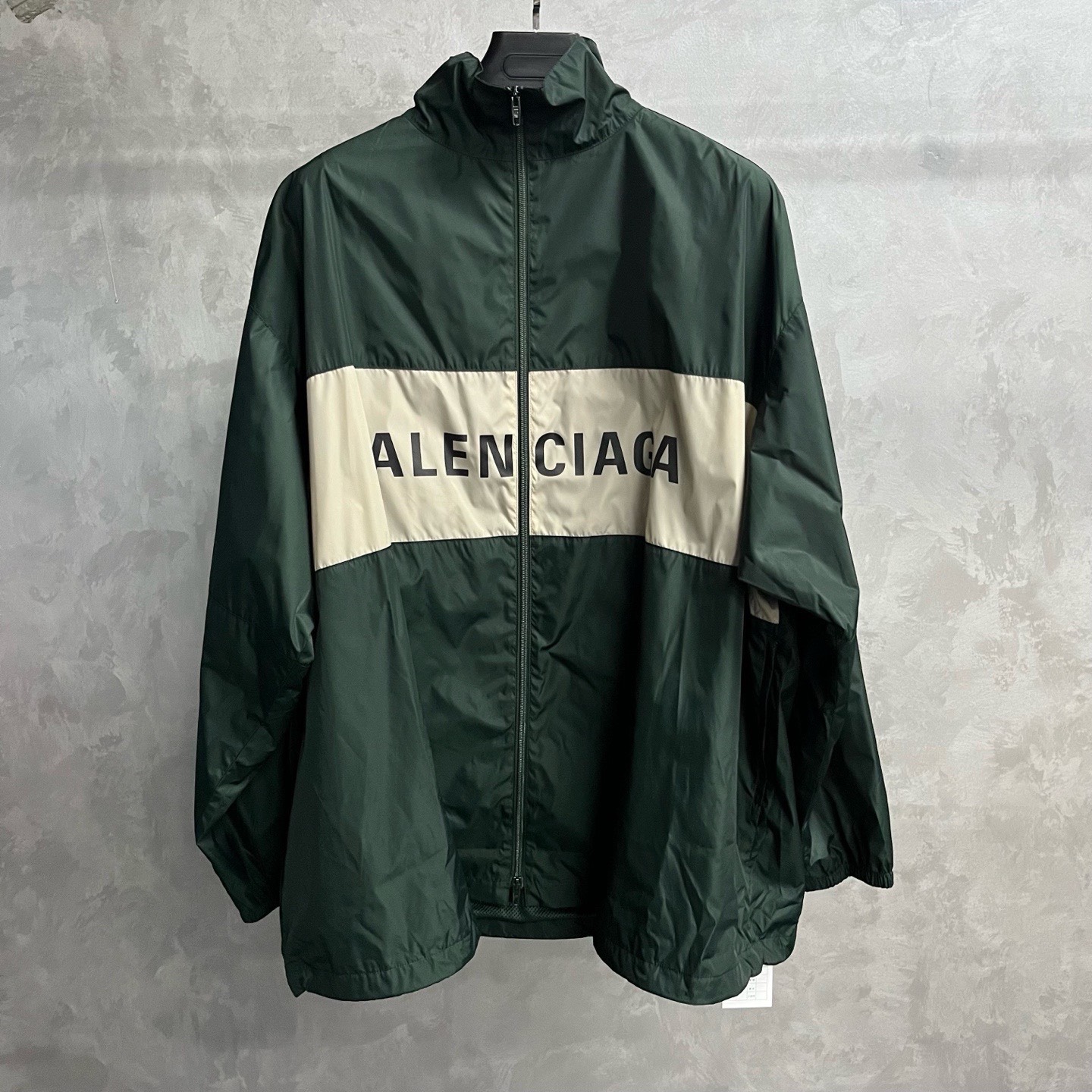 Balenciaga dark green logo letter print stand collar sun protection clothing