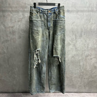 Balenciaga denim blue distressed ripped casual zipper side pocket jeans