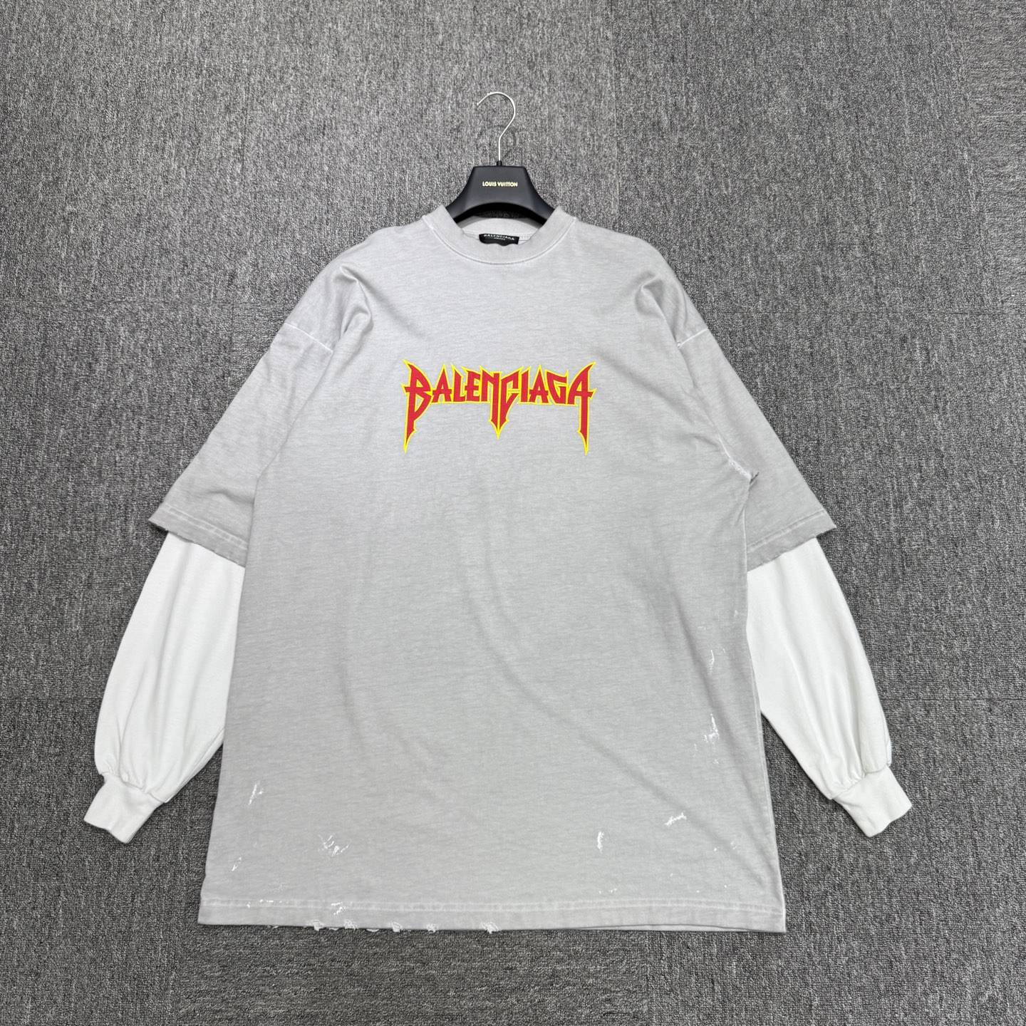 Balenciaga Lettering Printed Mock Two-Piece Shirt