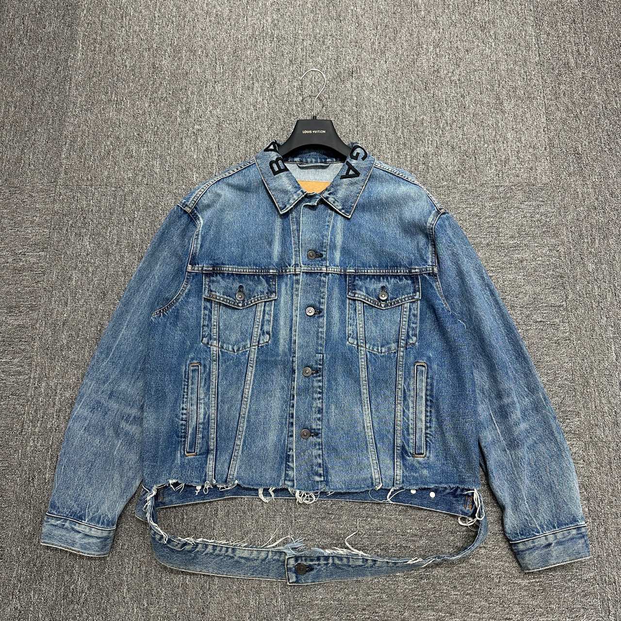 Balenciaga Neckline Lettering Embroidery Denim Jacket