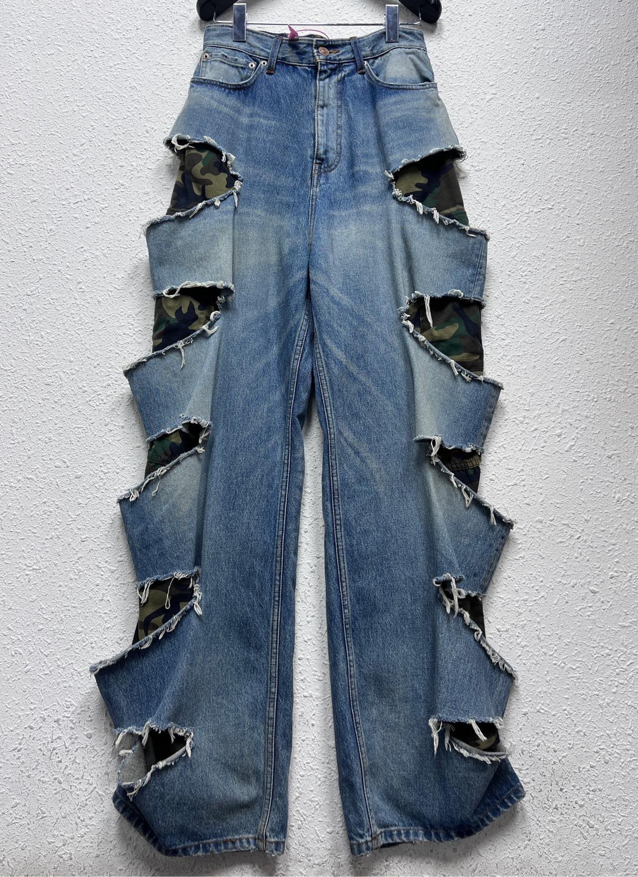 Balenciaga new knife-cut camouflage fake two-piece denim trousers