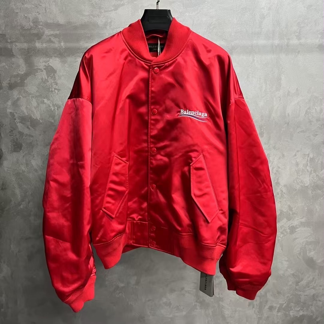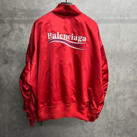 Balenciaga red letter logo print single-breasted loose-fit jacket