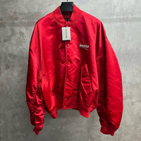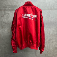Balenciaga red letter logo print single-breasted loose-fit jacket
