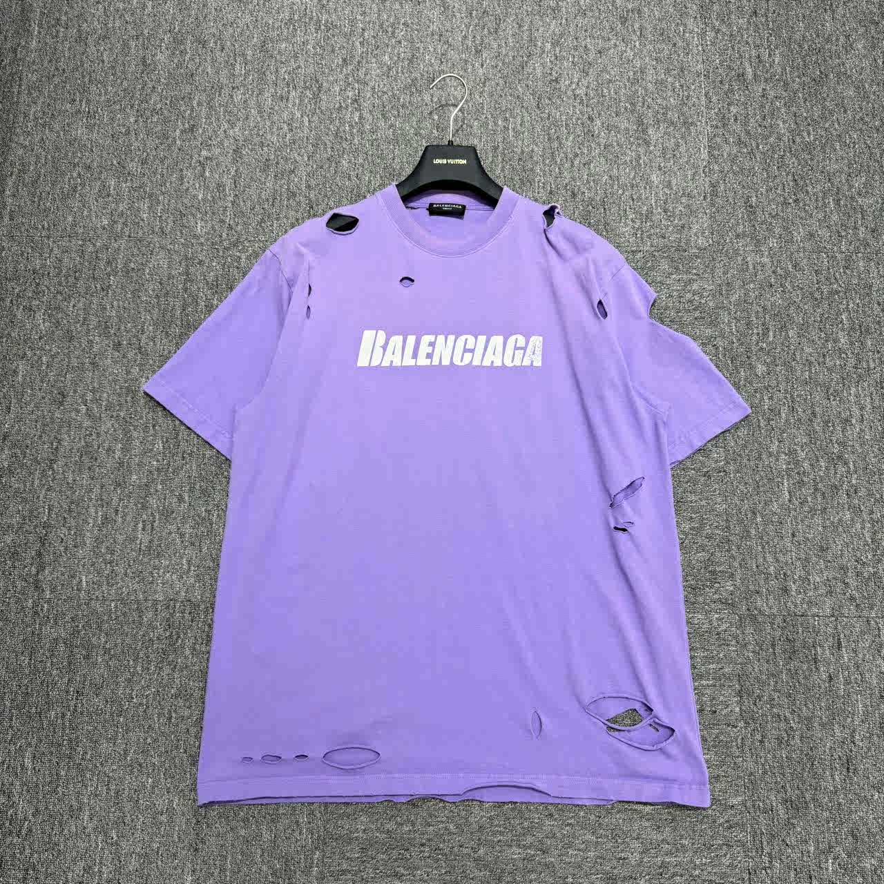 Balenciaga Taro Purple Distressed Logo Short Sleeve