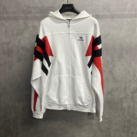 Balenciaga White Striped Embroidered Logo Varsity Jacket