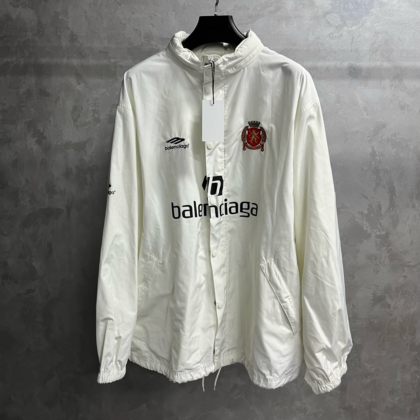 Balenciaga White Varsity Football Snap-Button Jacket