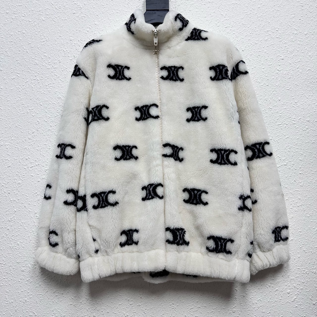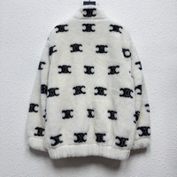CELINE Arc de Triomphe logo all-over jacquard teddy jacket
