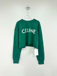 Celine dark green short-length long-sleeved sweatshirt with logo print.