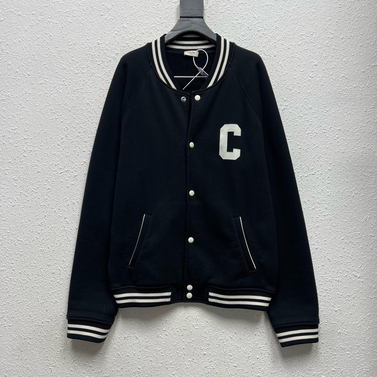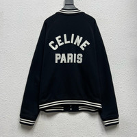 CELINE front and back letter LOGO embroidered knitted baseball jacket