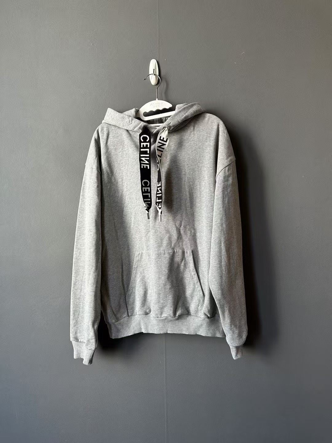 Celine gray drawstring logo hoodie