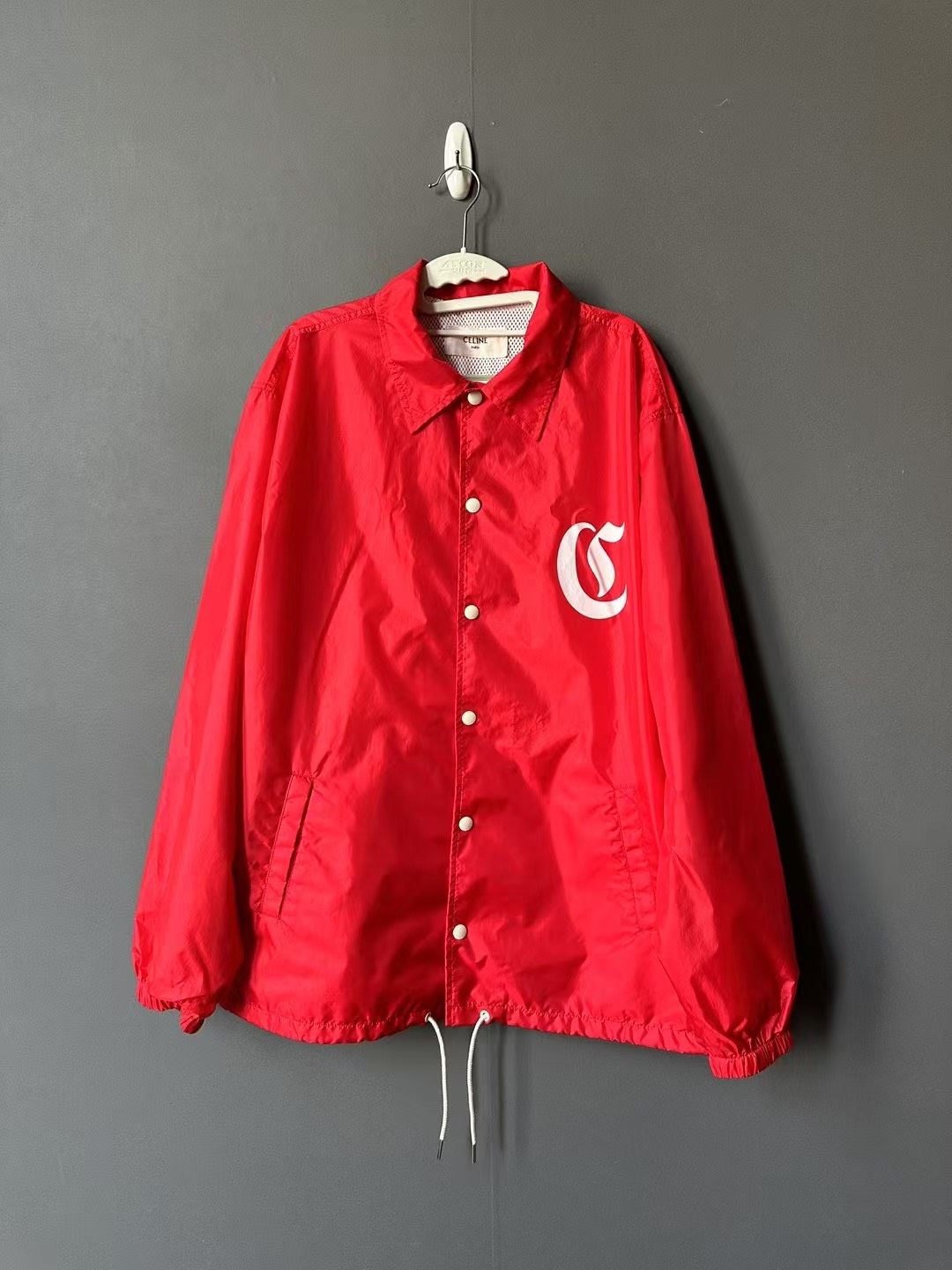 Celine red jacket with Sanskrit logo