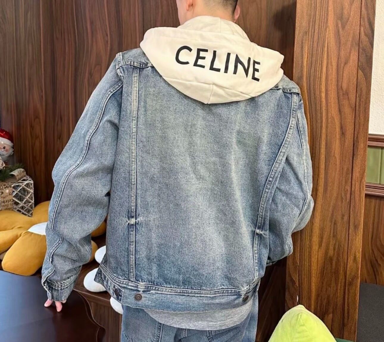 Celine Two-Piece Effect Denim Jacket with Back Logo