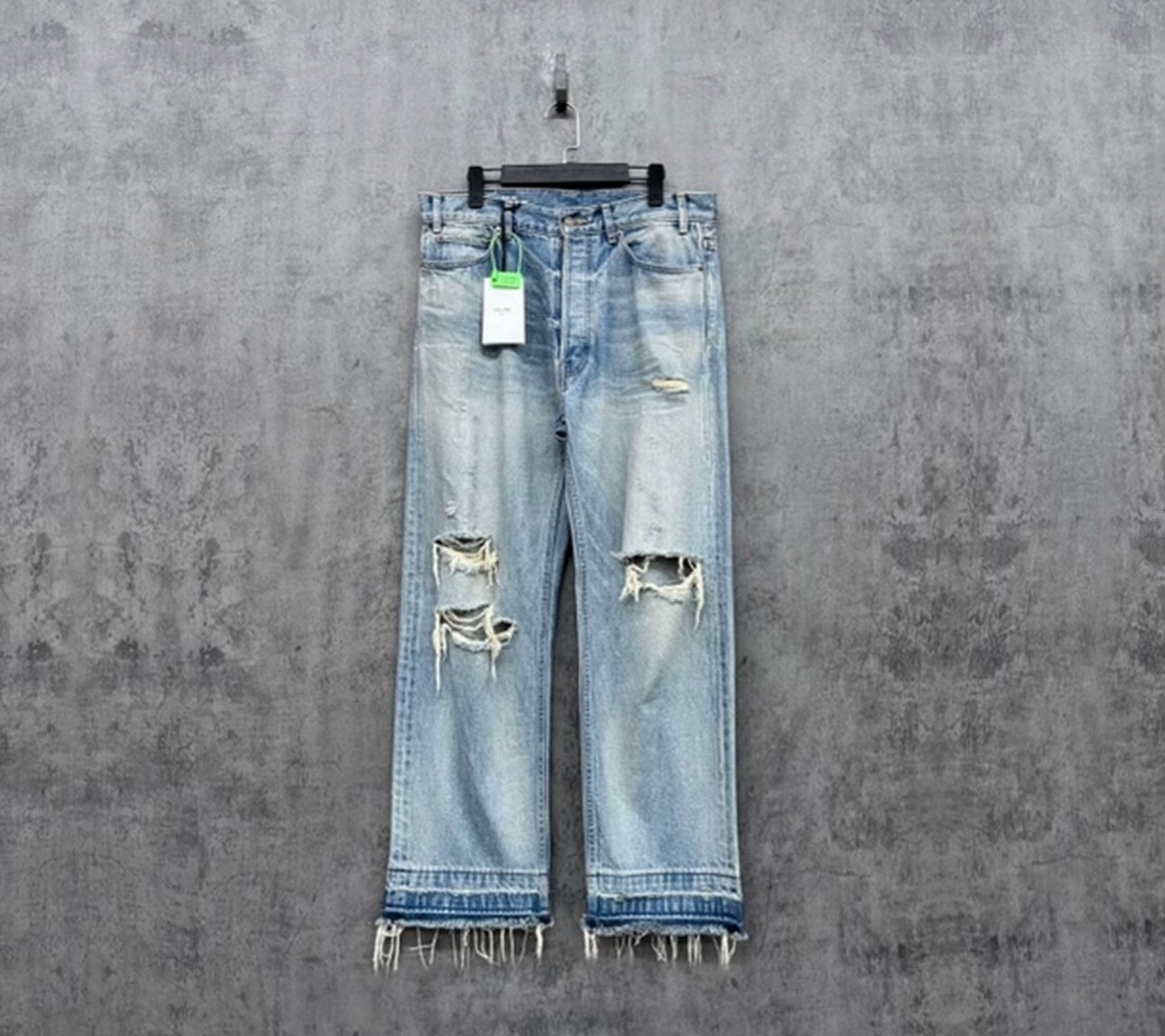 Celine's new washed and distressed ice blue denim jeans