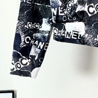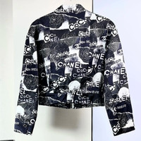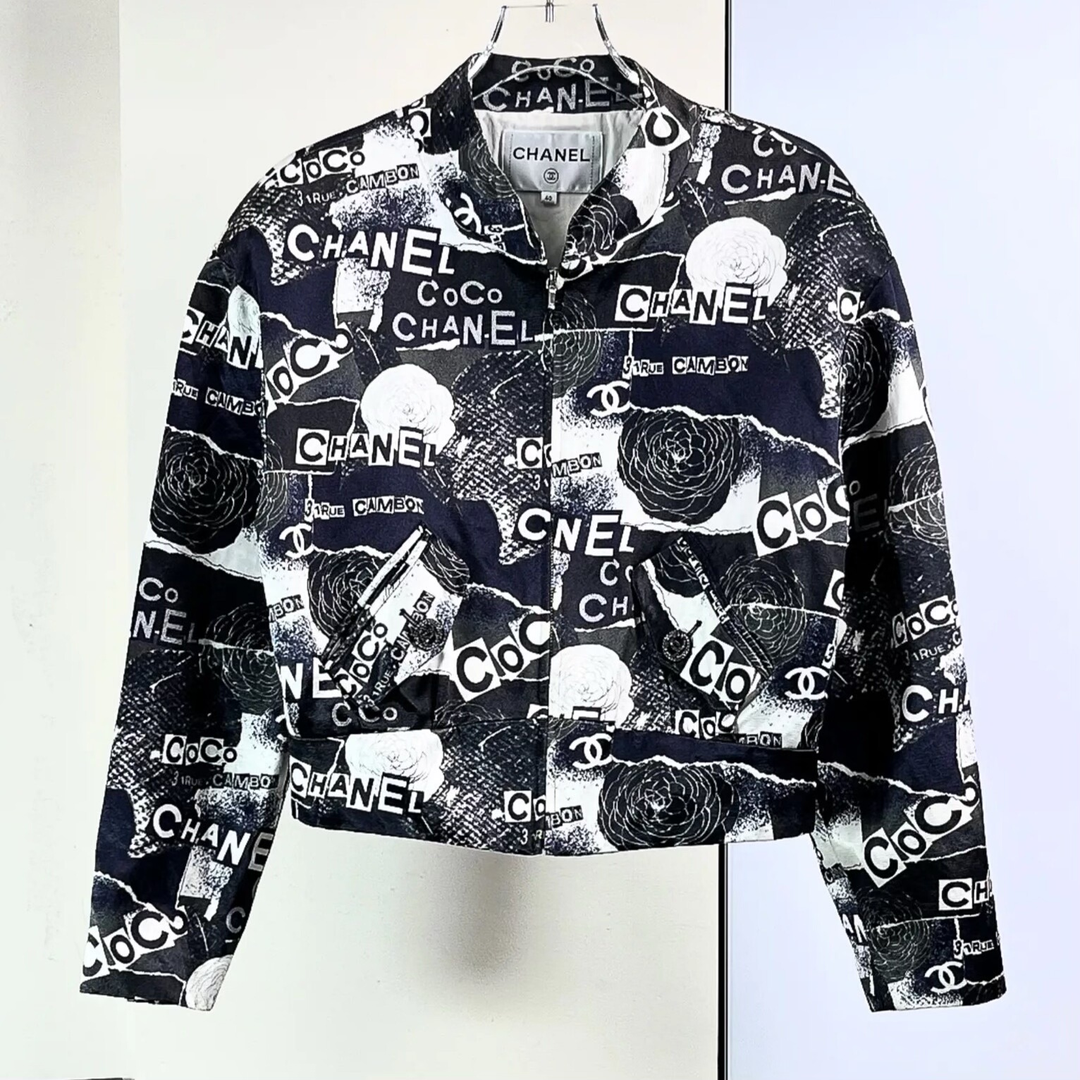 Chanel 20P Black and White Camellia Letter Graffiti Jacket
