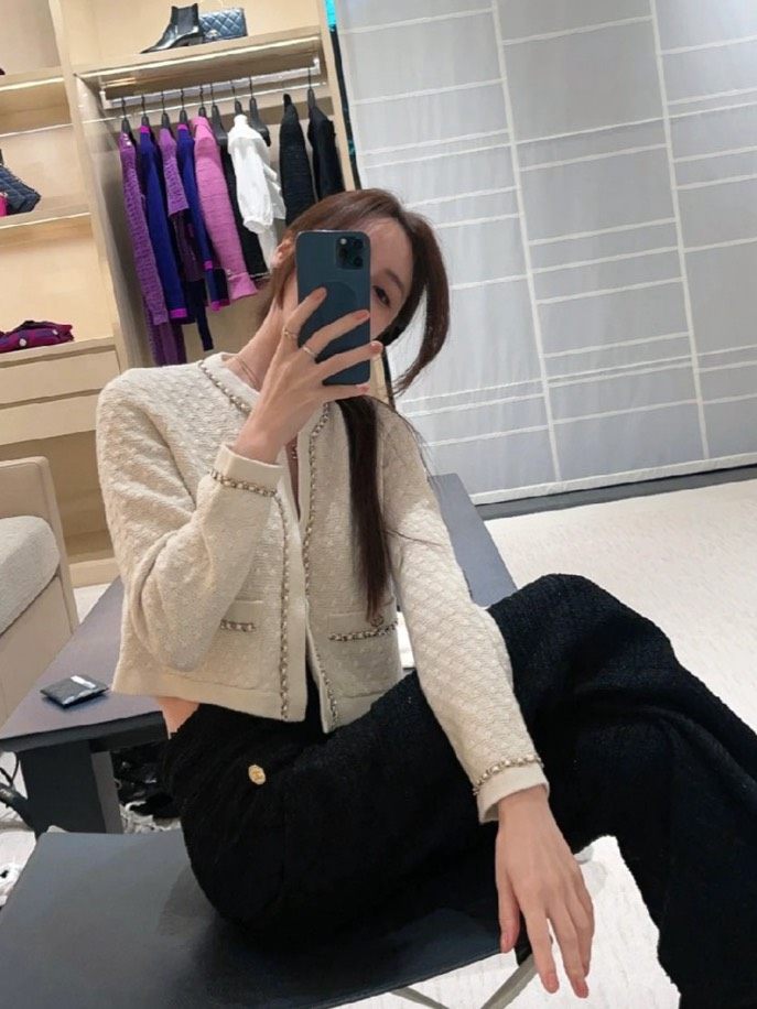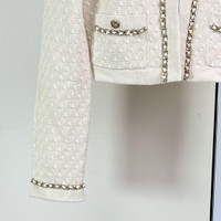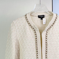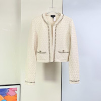 Chanel 23B Chain Trim White Knit Cardigan