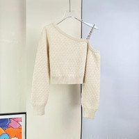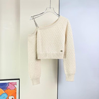 Chanel 23B white single-shoulder chain strap double-C knitted top
