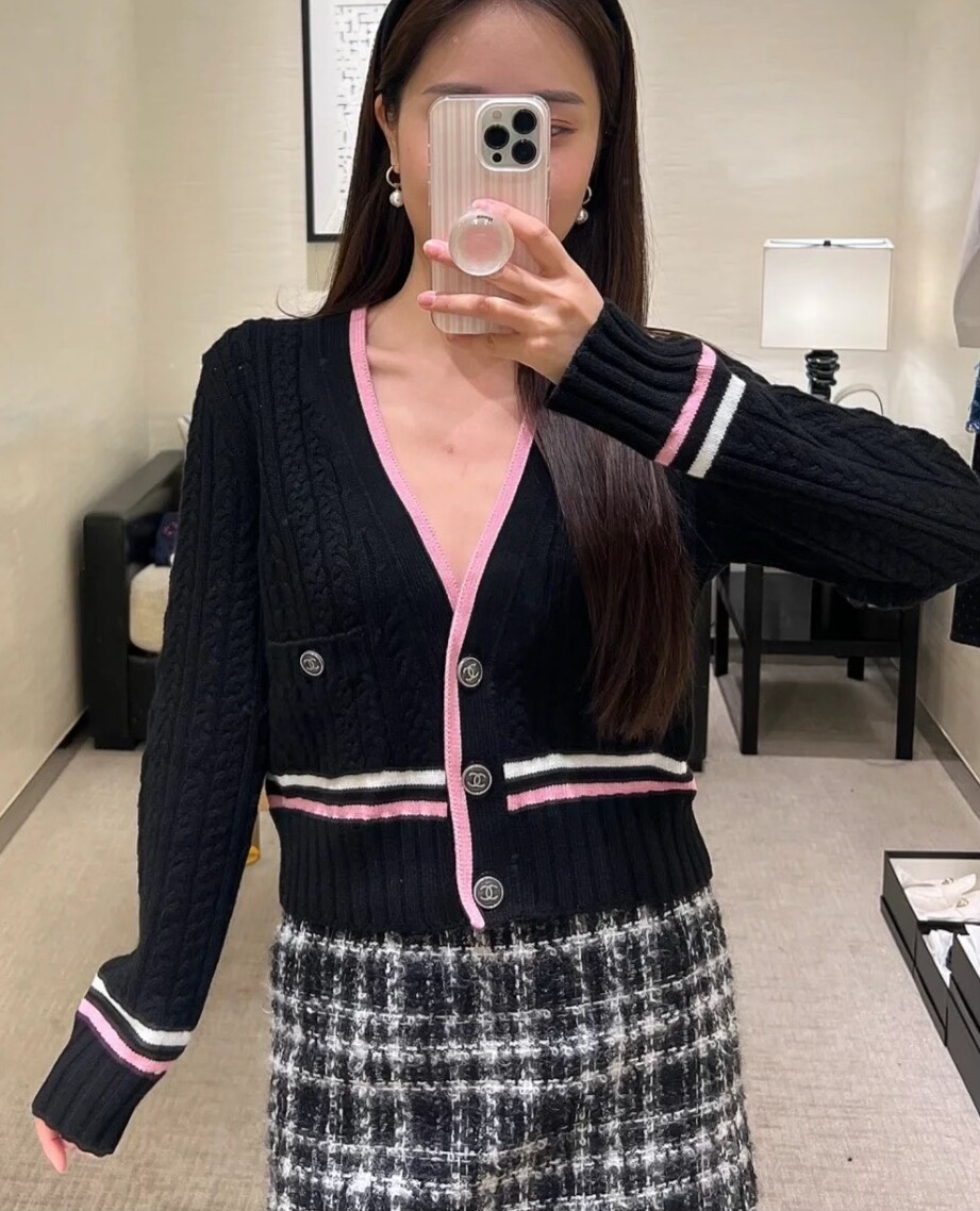 Chanel 23P Black and Pink Short Knitted Cardigan Jacket