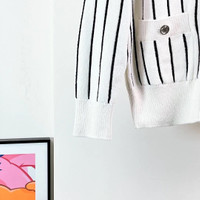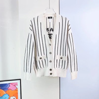 Chanel 23P Black and White Striped Knitted Cardigan
