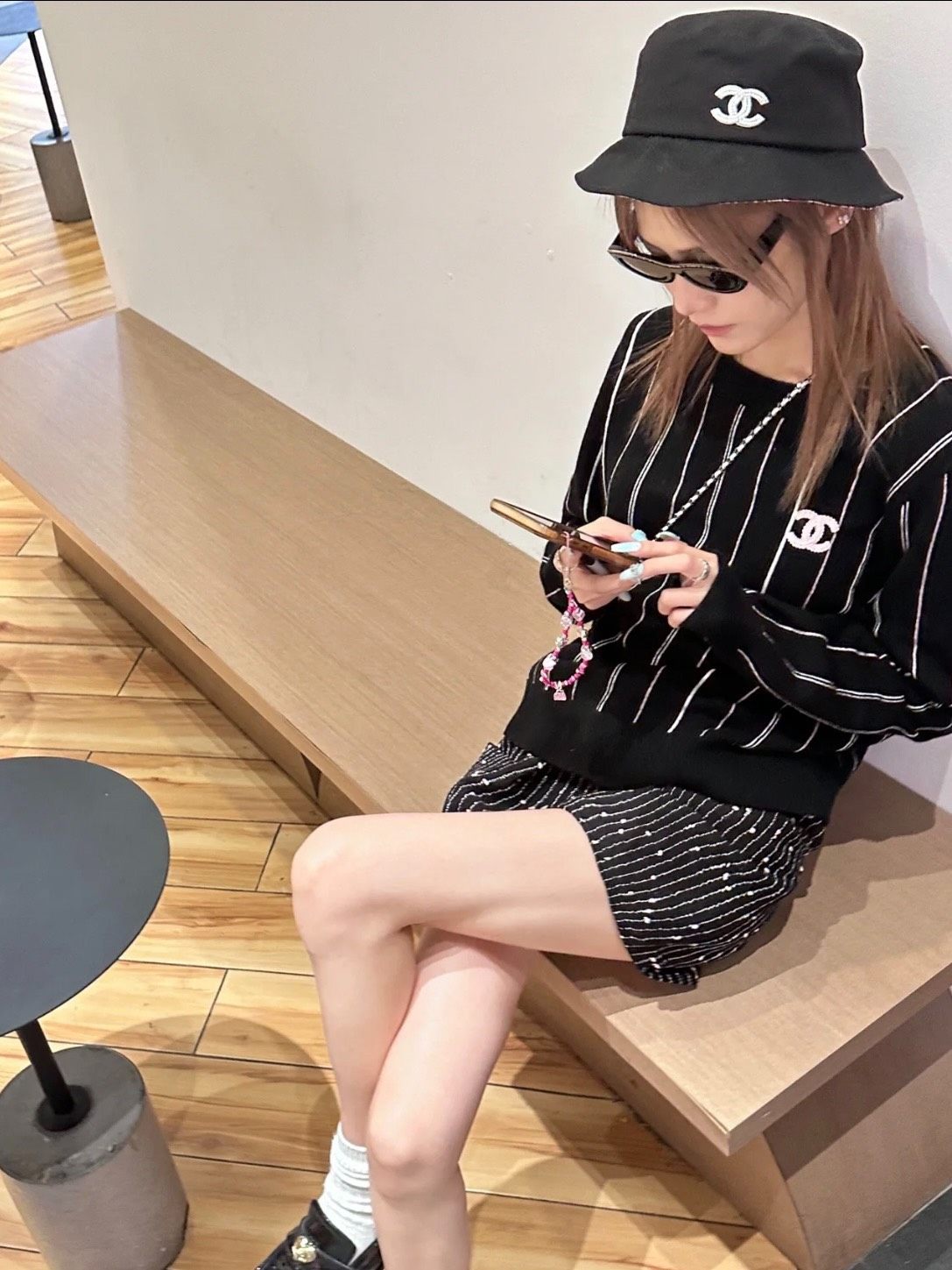 Chanel 23P Vertical Stripe Cashmere Knit Sweater