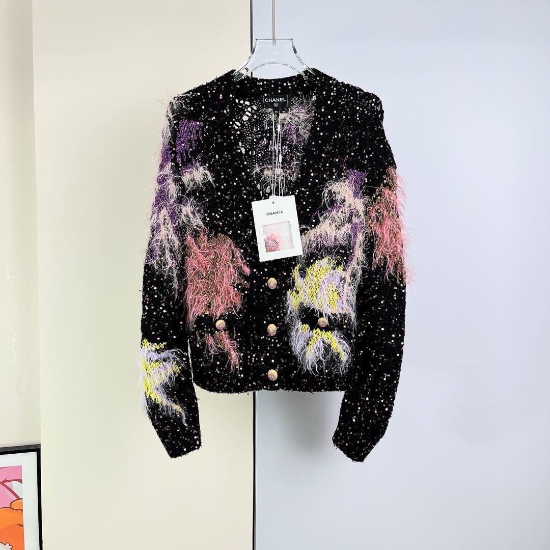 Chanel 24C sequined and feathered knit cardigan jacket