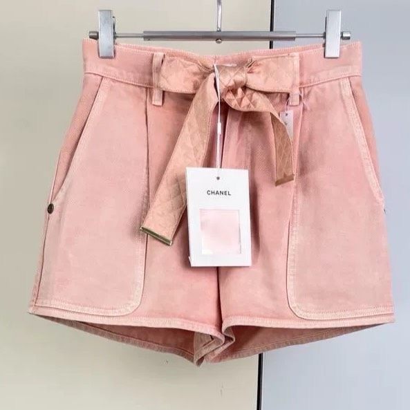 Chanel pink denim shorts with tie detail