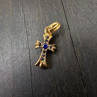 Chrome Hearts 22k Blue Diamond BabyFat Cross Pendant