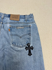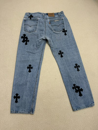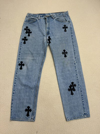 Chrome Hearts Vintage Levis 505 Cross Leather Jeans