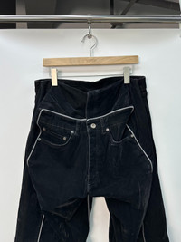 Y/Project runway-style deconstructed velvet wide-leg pants