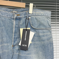 DIOR 2024 New Collection: Slogan embroidered logo leather denim jeans