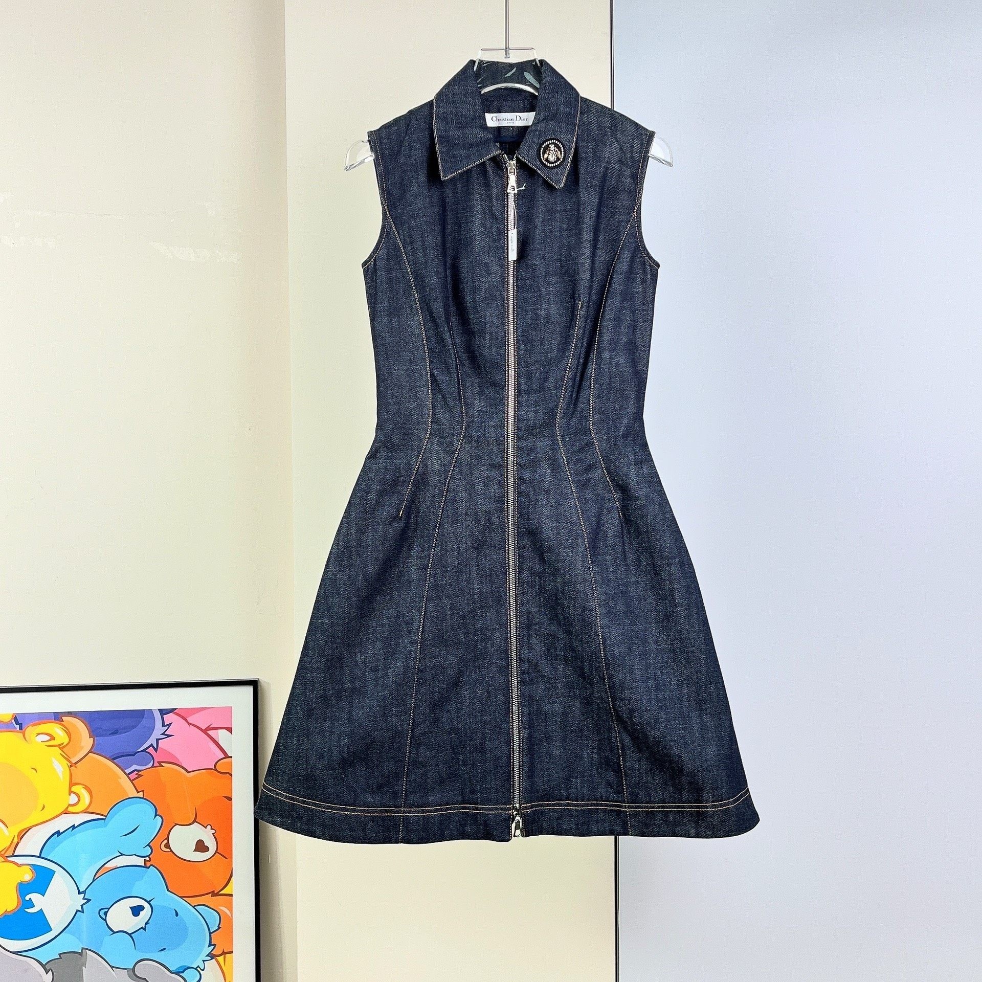 Dior bee-embroidered denim dress