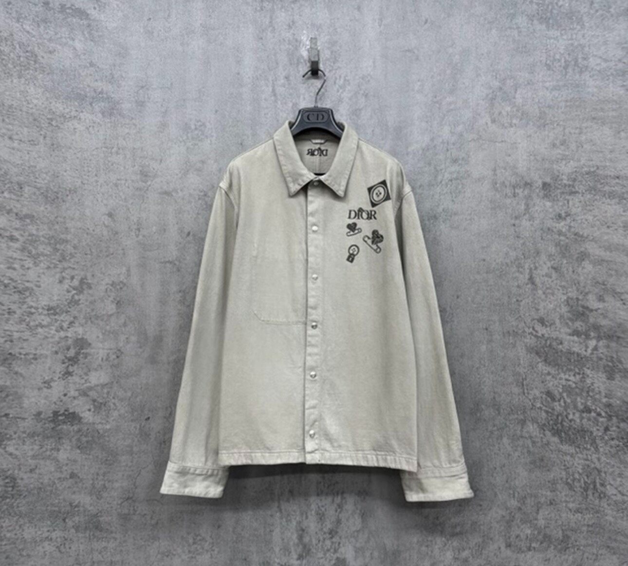 DIOR Distressed Washed Grey Denim Jacket with Embroidered Logo