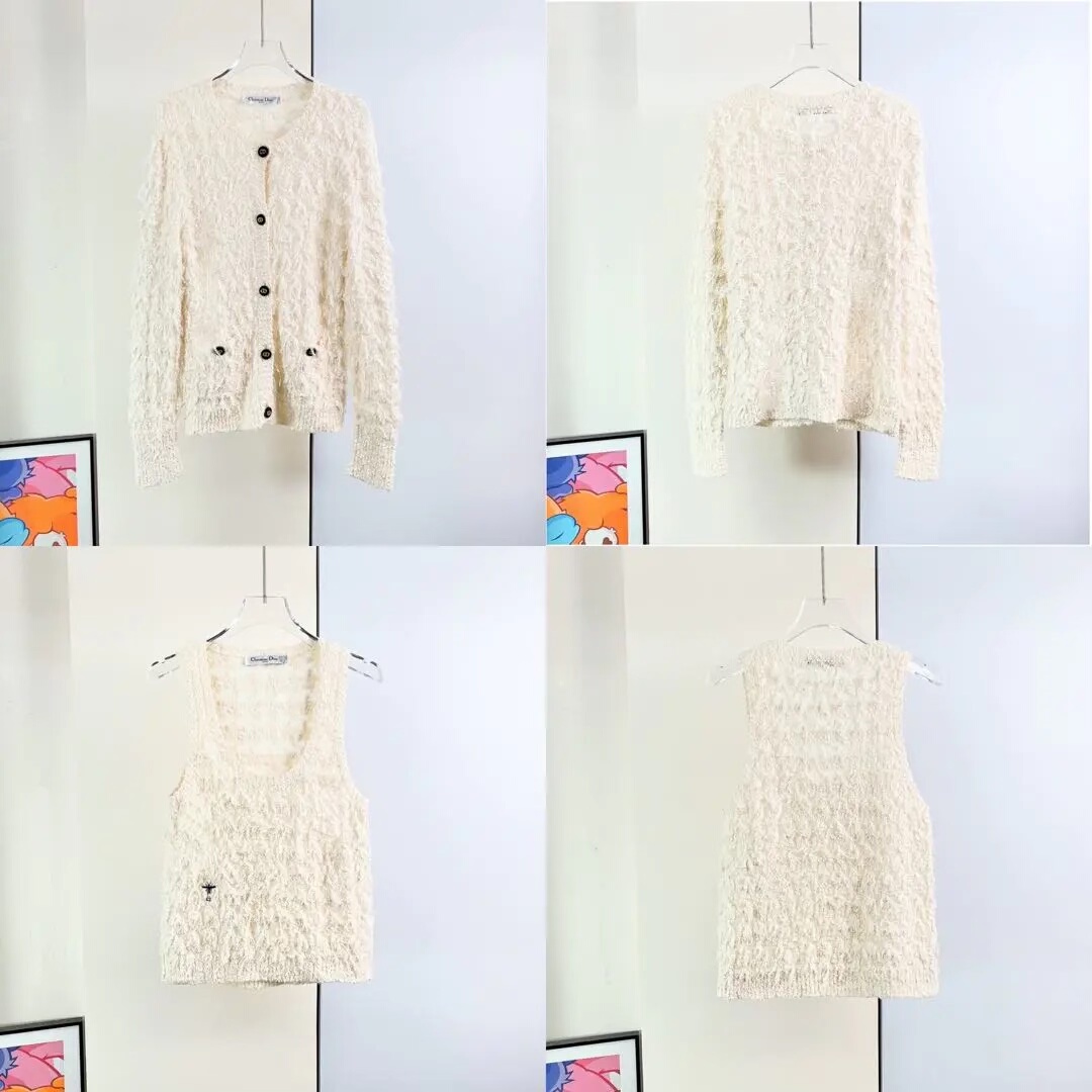 Dior off-white knitted cardigan and vest two-piece set