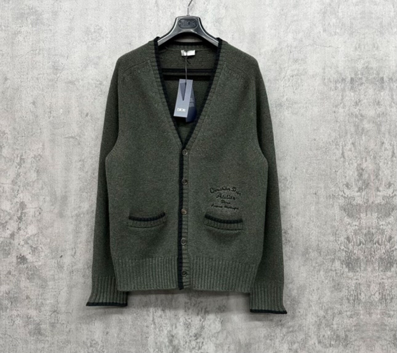 Dior Ribbed Cardigan Sweater with Embroidered Slogan Logo