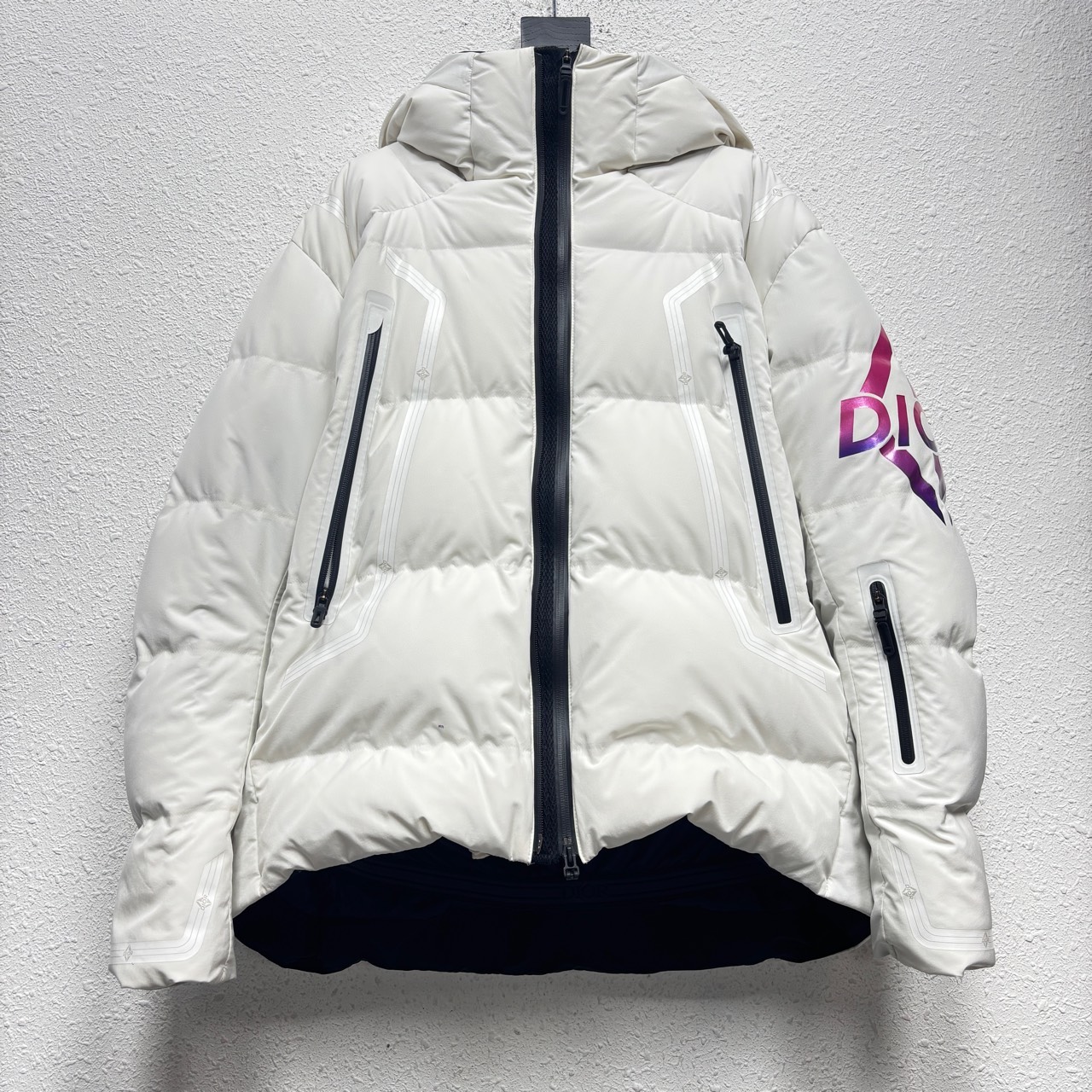 Dior x Descente ski series logo letter print lining dark pattern hooded down jacket