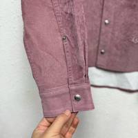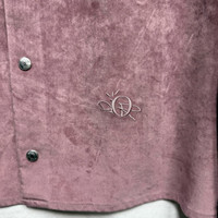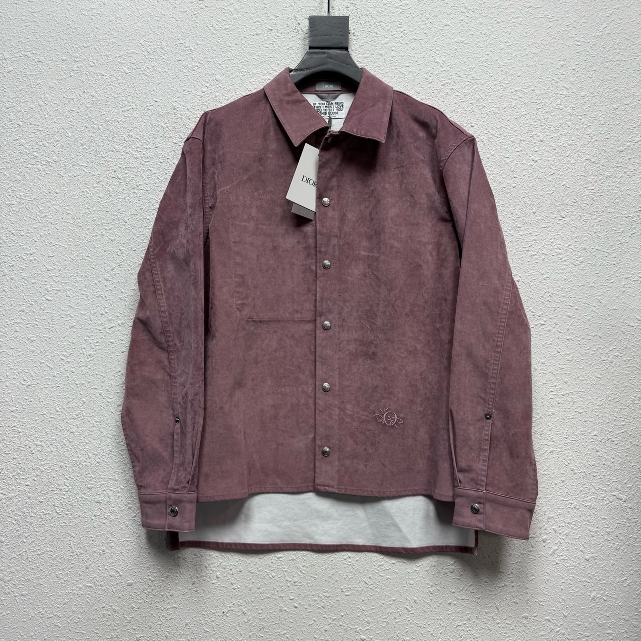 Dior x Travis Scott FW22 pink suede shirt jacket with graffiti lettering embroidered on the back