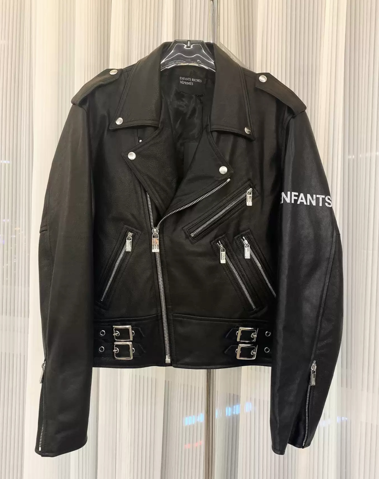Enfants Riches Deprimes arm letter logo leather jacket